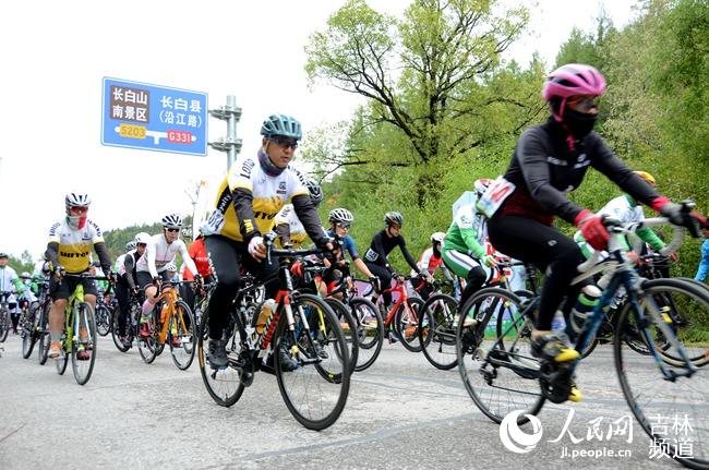 騎行參賽選手齊聚長白(人民網 李思玥 攝)