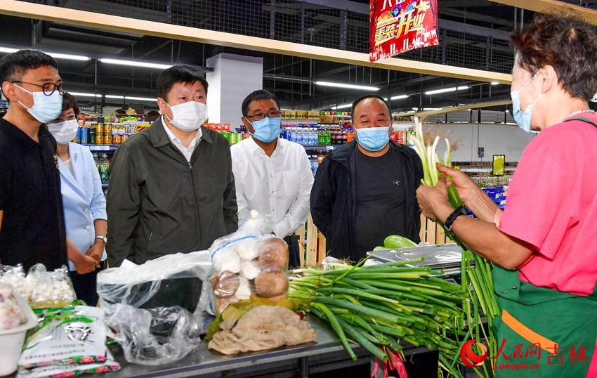 吉林市委書記賀志亮(左三)在高新區大正泰市場巡檢創城工作