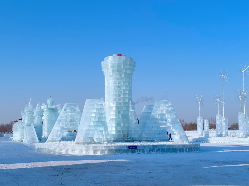 在捺缽冰雪歡樂園,滑梯、迷宮、冰上保齡球等多種冰雪游樂項目與冰雪景觀結合,“今年查干湖冰雪世界共分為五大板塊,各有特色。年度冰燈總占地面積4千萬平方米,用冰量3千萬立方米,在查干湖畔為廣大游客展現了冰雪藝術盛宴。”冰雪歡樂園負責人龐博說。