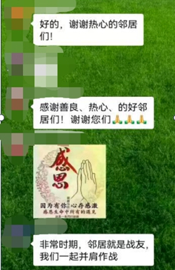 “和這些鄰居在一起,精神食糧也很充足。”呂女士笑著說:“經常有鄰居在群里講一個笑話,唱幾句歌,發一段正能量的話語,分享一下疫情防控小知識等,這讓我們在緊張的抗疫氛圍中又多了幾分輕松。”