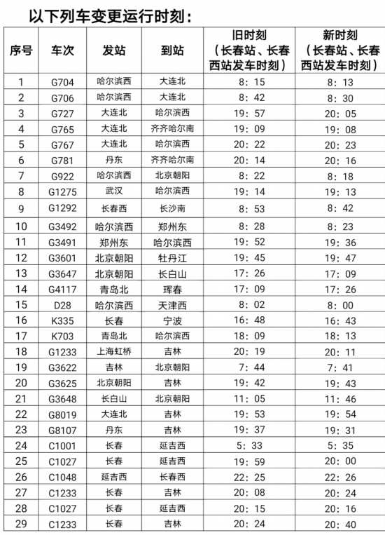 此次調圖,長春站新增旅客列車1對,優化調整運行區段5對,調整旅客列車發車時刻29列。
