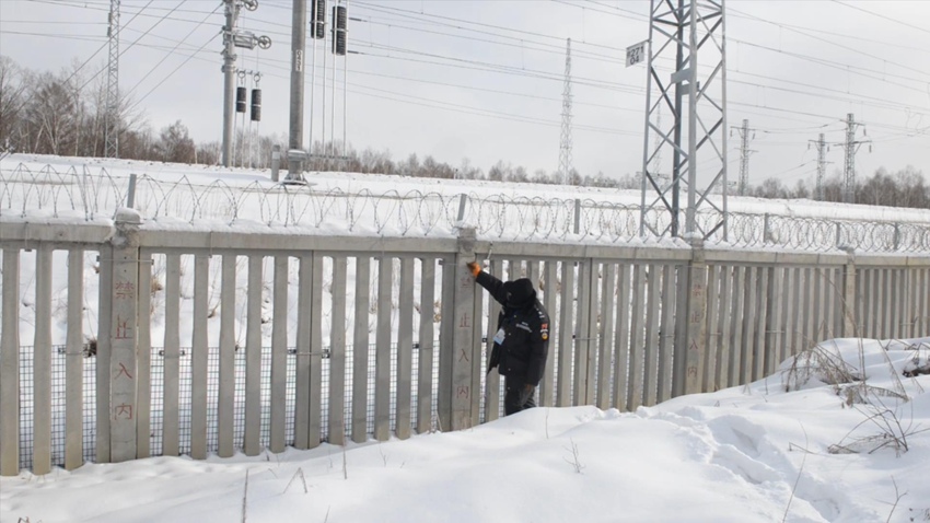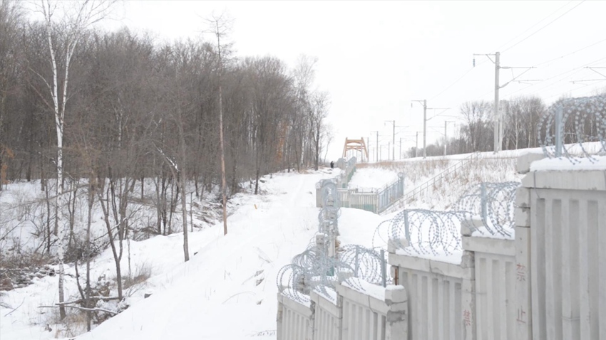 “現在氣溫零下32攝氏度,夜里比這還要冷。”1月24日14時整,地處長白山原始林區的沈佳高鐵白敦段8號崗亭,中國鐵路沈陽局集團有限公司高鐵護路巡防員李國君身著“護路”標識的黑色工作服,肩上斜背著G網電話,手拿望遠鏡,腳穿一雙高腰棉鞋,踏著厚厚積雪,由8號崗亭沿高鐵下行線封閉網外向永慶站方向巡檢。