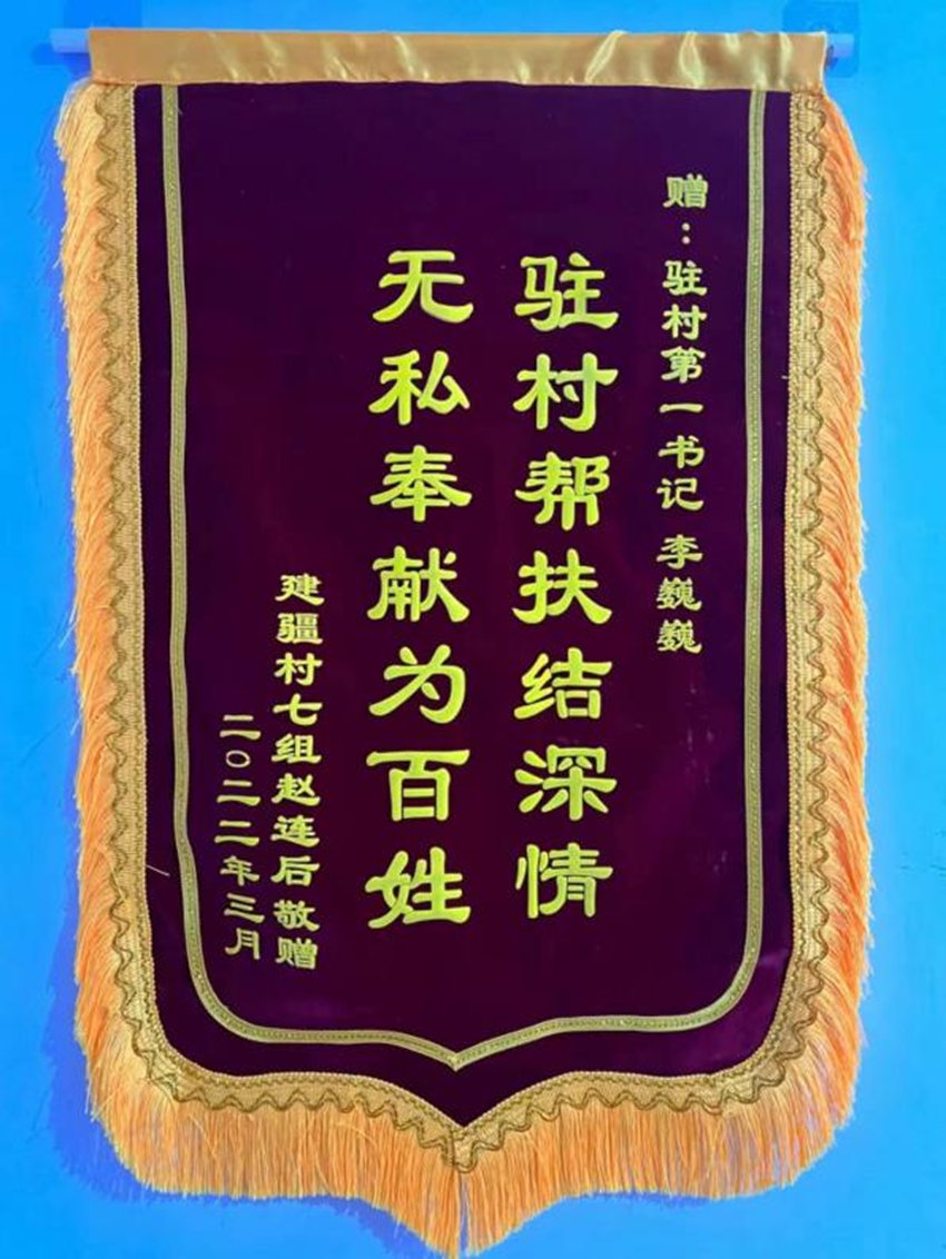 推動一二三產業融合發展是促進農民增產增收的法寶。為了幫專業戶爭取創業貸款,李巍巍親自做擔保,建成中草藥加工室。2022年,該農戶增收4萬余元,并為村民提供了500多個臨時就業崗位;2023年,加工室面積又擴大40平方米,收入比去年增加了5萬元。“駐村幫扶結深情,無私奉獻為百姓”。錦旗上的每一個字都表達著村民對李巍巍無盡的感激之情。