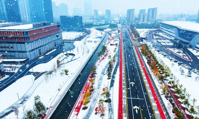 “大雪”時節,在長春新區長新創谷遠眺,一幅骨架端莊、氣質秀美的現代化花園新城映入眼簾。