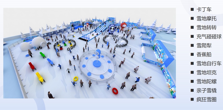 冰雪樂園包含卡丁車、雪地摩托、雪地轉轉、充氣碰碰球、雪爬犁、香蕉船、雪地自行車、雪地坦克、雪地陀螺、親子雪橇、瘋狂雪圈等,各類游玩項目應有盡有,暢享冬日樂趣。