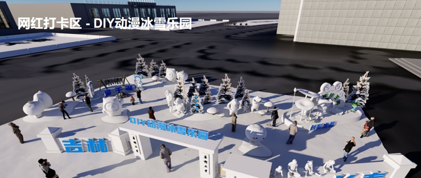 動漫冰雪樂園以動漫領域獨具吉林特色的冰雕、雪雕為主要內容,為廣大觀眾還原一個奇幻親切的動漫世界。該區域也是網紅打卡、玩留念的必選之地。DIY動漫冰雪樂園主要人物形象包括來自查干湖環湖馬拉松吉祥物查小魚、吉林省原創IP動畫電影《茶啊二中》中的雪雕元素、由吉林動畫學院打造的《青蛙王國》原創動畫等,在這里可以拍照留念。