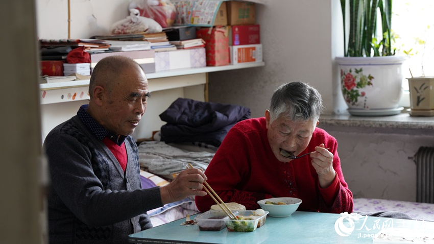 黃新民和老伴兒吃上熱乎乎的早餐。人民網(wǎng)記者 李成偉攝