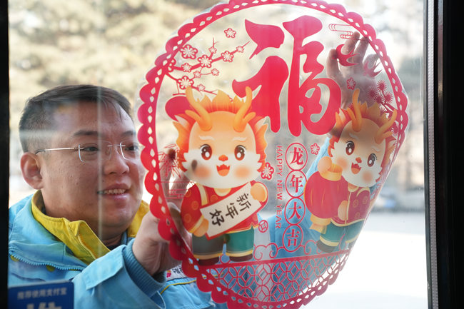 “再高點(diǎn),下面往右來一點(diǎn),好嘞!就這樣按住了,我先固定一下。”記者來到普慶加油站時(shí),站長董晟君正在門口貼“福字”?!斑@不馬上過年了嘛,我們想著早點(diǎn)貼出來,年前加油的顧客多,讓大家提前感受到春節(jié)的氛圍?!倍删f。