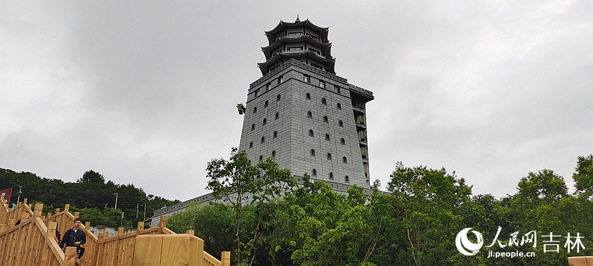 人民網琿春6月13日電 (記者王帝元)登上龍虎閣,“一眼望三國”是吉林省琿春市防川國家級風景名勝區內的一個著名景點,這個獨特的地理位置讓游客站在觀景臺上,可以同時遠眺中國、俄羅斯和朝鮮三個國家的風光。