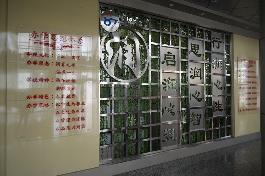 “經過近十年的行動實踐證明,內化的精神力量是具有沖擊力和影響力的?!睆執K介紹,2013年,學??偨Y自遷校以來的發展背景、發展軌跡及現實中八十七中學的風貌,提煉出“潤”作為學校文化的核心精髓,確立了人文教育的辦學特色,明確了“潤育九年 涵養一生”的辦學理念。