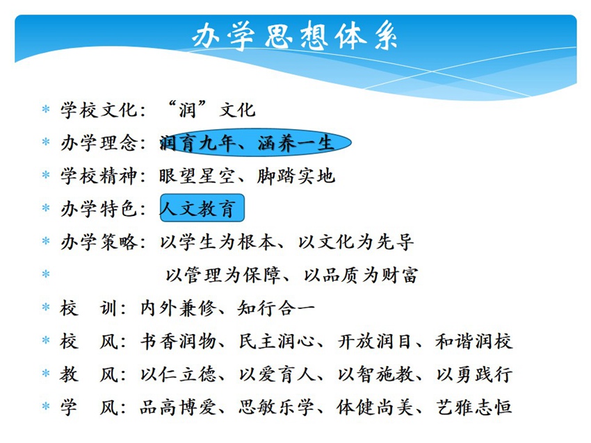“書香潤物,民主潤心,開放潤目,和諧潤?!薄?6字校風,準確概括了全校師生對“潤”文化的大力弘揚和生動實踐。