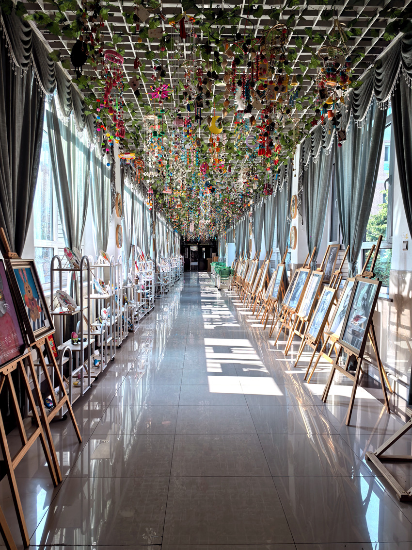 走進八十七中學知潤樓,站在一樓大廳,仰頭而望,工整的書畫整齊懸掛圍欄之上,濃厚的文化氣息撲面而來?!斑@里只是冰山一角,學校還有很多文化展示區。我們樂于給師生提供各種展示的平臺,努力營造積極向上、百花齊放、個性鮮明、健康文明的校園文化氛圍?!睆執K說。