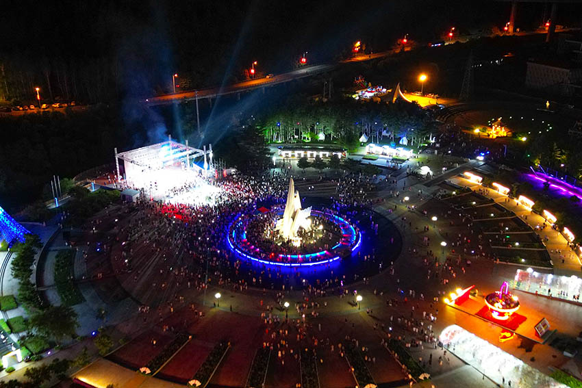 隨著夜幕降臨,活動在DJ表演中拉開了帷幕。樂隊表演《紅太陽照邊疆》《國際歌》《延邊人民熱愛毛主席》、現代舞《Yes or yes》、歌曲串燒《特別的愛+執著+朋友》等節目等精彩節目輪番上演,臺下觀眾熱烈鼓掌、歡呼雀躍。活動中發布了“長白山最美風情線”,從長白山到石門鎮串聯全域20余個特色景區景點,邊境口岸、登山攀巖、礦泉水漂流、燈光瀑布、激情越野、休閑垂釣、民俗體驗、紅色研學等各類特色項目。現場還與各景區進行了視頻連線,充分展現安圖各景區夜游風采,為游客在安圖游玩提供指引,吸引更多游客打卡游玩。