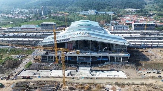 通化西站項目是沈白高鐵在建的最大站房項目,該項目總建筑面積約3萬平方米,站場內(nèi)設(shè)計有高速場4臺8線、普速場3臺5線,站房主體為南、北站房及高架候車室。目前,站房工程主體均已完成,屋面鋼結(jié)構(gòu)拼裝施工完成50%。站臺雨棚二、三站臺雨棚主體完成70%,一站臺雨棚主體架體搭設(shè)完成50%。10KV鍋爐房及加壓泵房主體施工完成,裝飾裝修完成80%;公安派出所主體5層架體搭設(shè);行車公寓基礎(chǔ)施工完成。