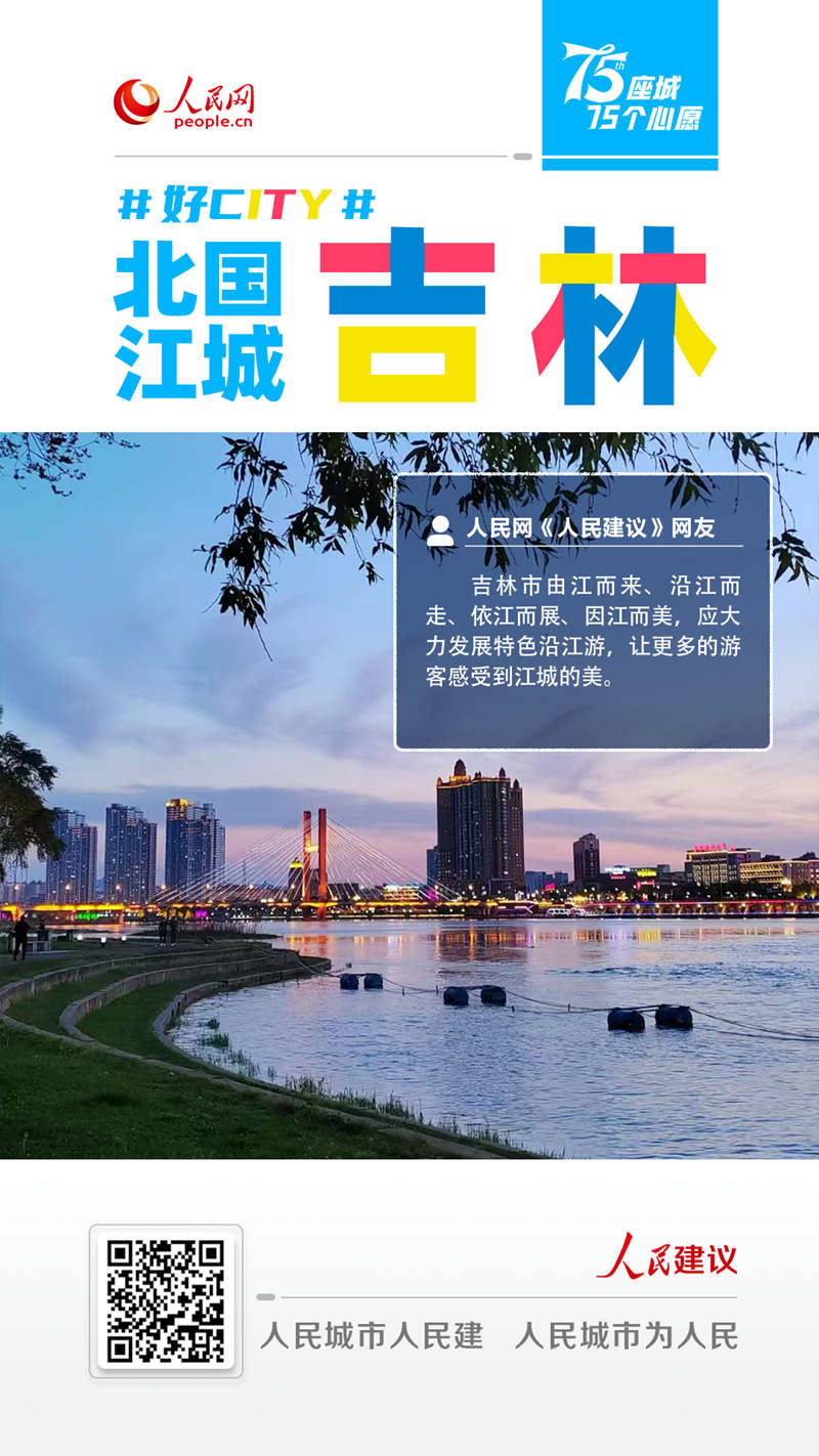 人民城市人民建,人民城市為人民。今年是新中國成立75周年,人民網(wǎng)《人民建議》欄目發(fā)起“75 座城,75個心愿”主題活動(點擊參與),誠摯邀請社會各界網(wǎng)民積極參與,為城市的繁榮與發(fā)展貢獻智慧。歡迎您加入討論,一起為吉林市建設發(fā)展建言獻策。