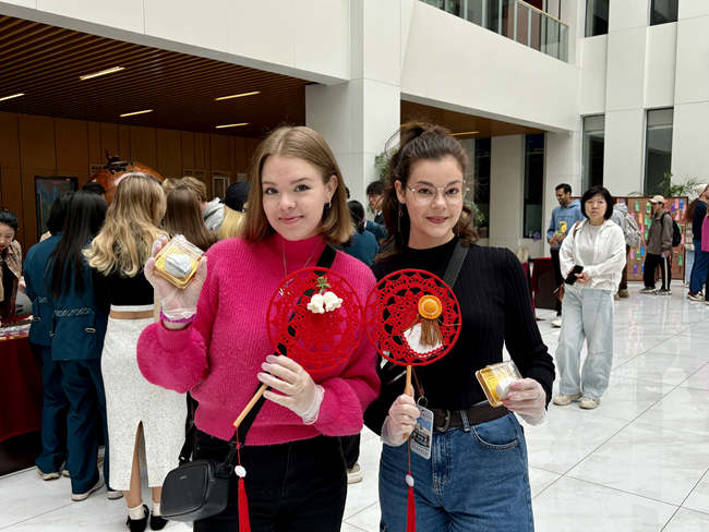 活動中,來自俄羅斯、越南、塔吉克斯坦、印度尼西亞、泰國等國家的外籍師生先后了解了中秋節的由來和風俗習慣,體驗了水轉印扇、制作中國結、草編金魚、柿柿如意拼布、秸稈粘畫等非遺文化,還制作了美味的冰皮月餅。