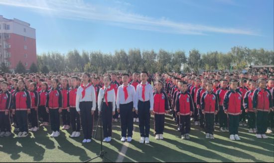 稚嫩的歌聲傾訴著歷史的輪廓,《歌唱祖國》的美好樂章響徹在學校的天空,喚醒新時代的紅色記憶。同學們精神抖擻、滿懷深情,在紅色精神力量的感染下,接受了一次精神洗禮,“生在紅旗下,長在春風里”的炙熱情懷里綻放著愛國的底氣和少年的驕傲。