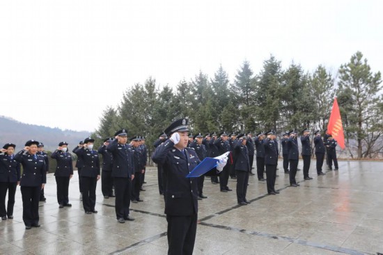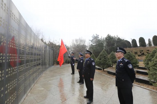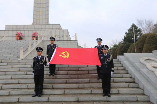 在鮮紅的黨旗下,全體黨員重溫入黨誓詞,錚錚誓言響徹陵園,傳遞出戒毒民警對黨忠誠、服務人民的堅定信念。通過莊嚴的儀式,全體民警深刻感受到肩頭的責任與使命。革命先烈以生命鑄就和平,新時代的戒毒人民警察則以維護國家安全和守護社會安寧為己任,用實際行動詮釋初心與擔當。