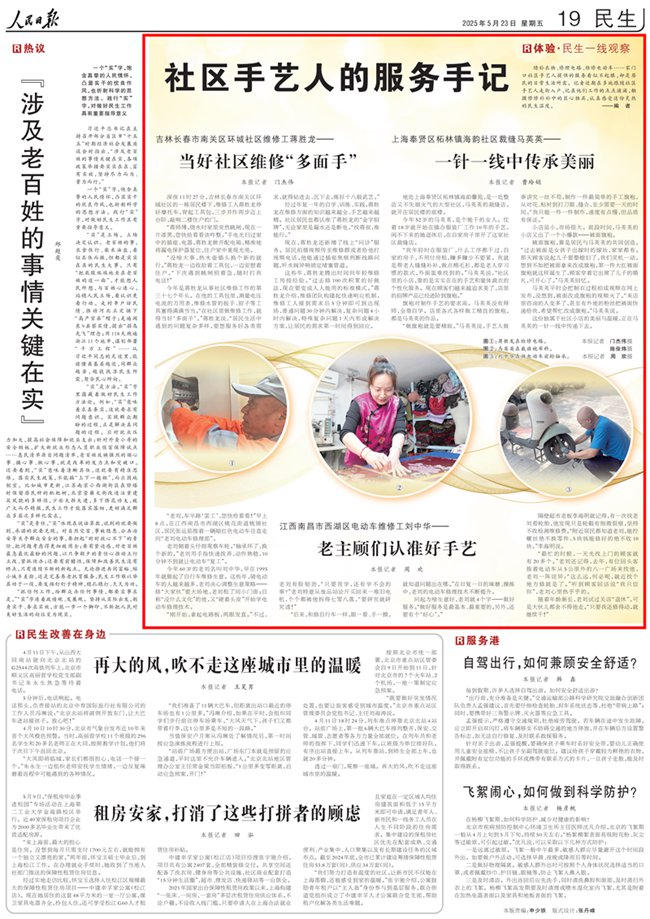 縫補衣物、修理電路、維修電動車……家門口社區手藝人提供的服務看似不起眼,卻是居民的日常生活所需。記者近期在多地跟隨社區手藝人走街入戶,記錄他們工作的點點滴滴,觸摸修修補補中的匠心獨具,認真感受這份炙熱的民生溫度。