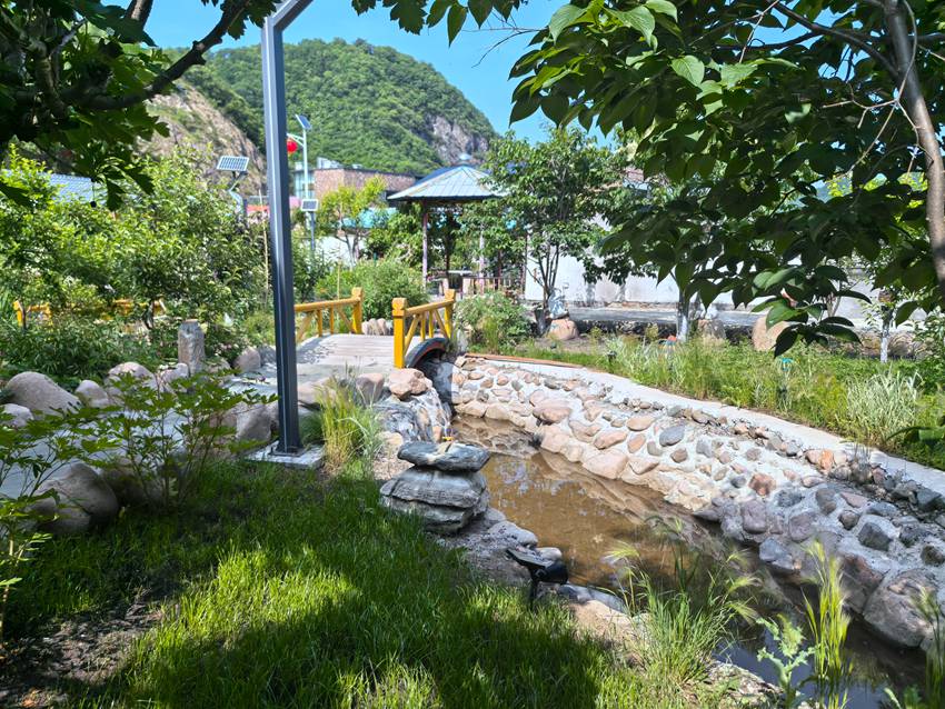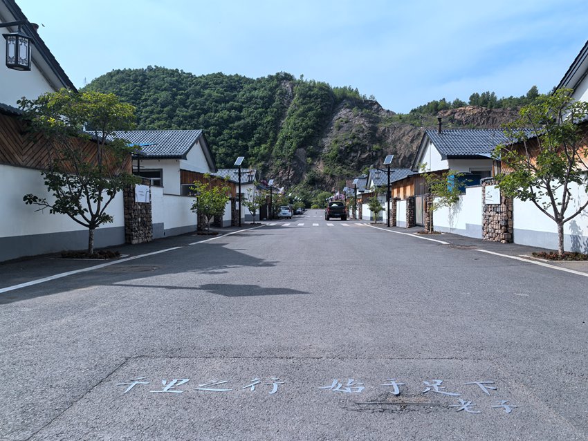 環(huán)顧村莊,干凈整潔的馬路兩側(cè),整齊劃一的房屋依次排開(kāi),灰瓦白墻,和村后的青山相映成畫(huà)。再配上村后小河的潺潺流水聲,整個(gè)村莊愈發(fā)愜意。