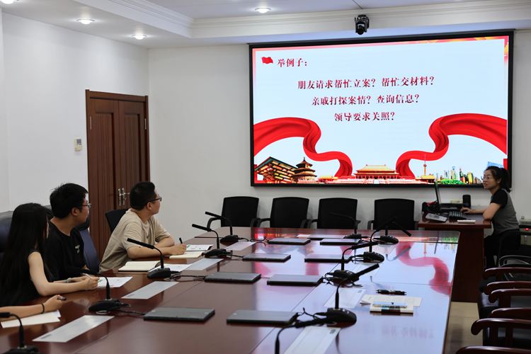 政治部副主任熊哲言以《入職第一課——廉政教育》為題,警示新入職公務員要樹立正確的價值觀和權力觀,時刻繃緊紀律之弦,堅守廉潔自律的底線。“法院是維護公平正義的‘最后一道防線’,而廉政是必須用一生堅守的‘底線’——從入職第一天起,就要把‘廉潔’二字刻進骨子里、融入行動中。”