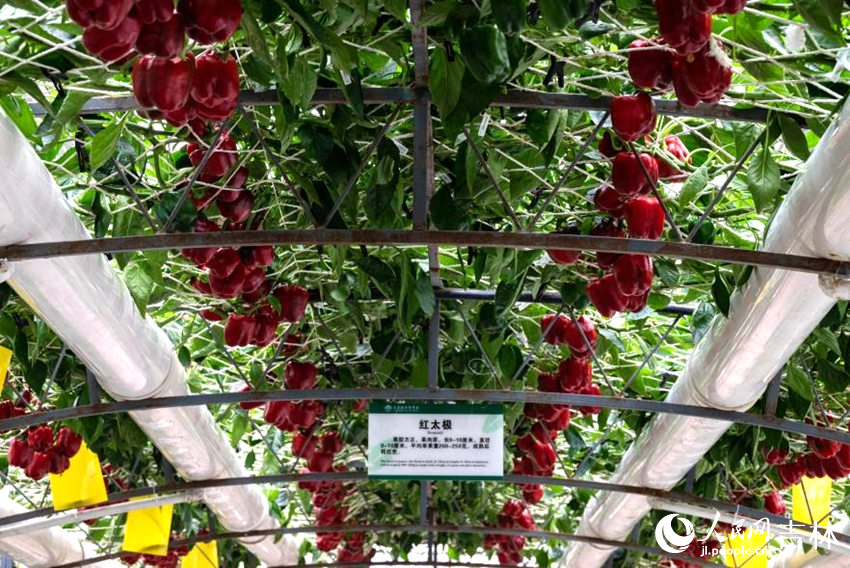 移步室內,育苗溫室內使用冗盤育苗技術培養的禾苗生長得郁郁蔥蔥,基質栽培區的“皇太極”在工作人員的悉心照料下早已碩果累累,高新無土栽培區的“紅太極”生長在游客頭頂高懸的架子上,熱帶果樹園的香蕉距離成熟也僅差一步之遙。