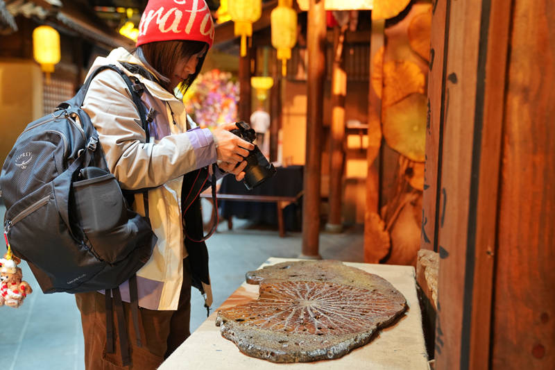 工作人員介紹,該項目以“天池祈福”為敘事核心,設置角色扮演互動、金代市井生活體驗、祈福儀式展演、長白山奇境探秘四大模塊,引導游客從“旁觀者”轉變為“劇中人”,實現多層次沉浸式體驗。同時,街區整合了長白山滿族文化、漁獵文化等非物質文化遺產,30余個演藝節目均取材于長白山民間故事,游客不僅可以觀賞,還能參與祈福儀式、手作體驗等互動環節,強化文化感知度。