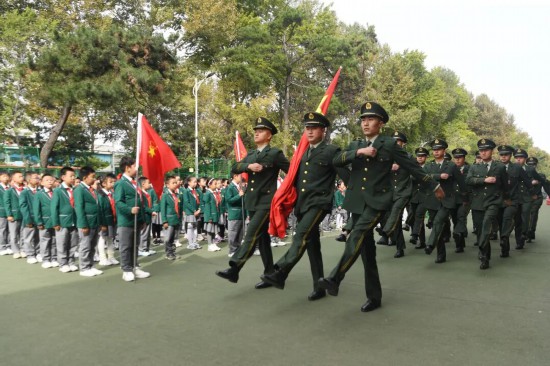 “吉行軍”退役軍人志愿者組成護旗方隊,負責執行各學校的升旗儀式。在吉林市第三十二中學,退役軍人護旗方隊身著戎裝,步伐鏗鏘,護衛五星紅旗步入升旗臺。遼源市福鎮路小學全體師生肅立行禮,在雄壯的國歌聲中注視國旗冉冉升起,真摯的愛國情感在每個人心中激蕩。白山市第九中學的同學們凝視迎風飄揚的國旗,仿佛聆聽到革命歲月的歷史回響。