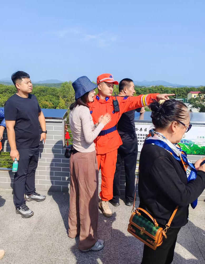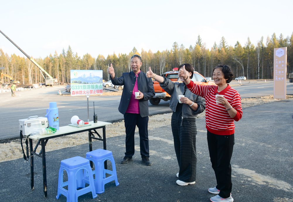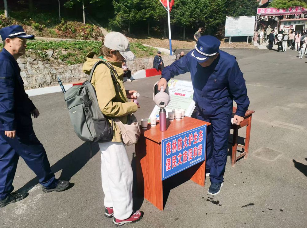 在G331沿線等旅游服務(wù)點(diǎn),身著紅色或藍(lán)色制服的防火員微笑著將一杯杯熱水和宣傳冊(cè)遞到游客手中,并熱情地回答著有關(guān)森林防火、游玩攻略等各種問題。桌上擴(kuò)音器、熱水壺、紙巾等一應(yīng)俱全,“森林防火護(hù)生態(tài) 便民文旅促和諧”的標(biāo)牌醒目而溫馨。“我們不僅是防火員,還是義務(wù)講解員、導(dǎo)游、攝影師,更是‘活地圖’。”一位正在琿春市森林火災(zāi)預(yù)防中心執(zhí)勤的防火員說道。他手持對(duì)講機(jī),目光如炬,守護(hù)著車輛與山林的安全,也隨時(shí)準(zhǔn)備為游客指路答疑。
