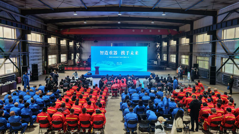 本次發布會集中展示了該在石油修井、油氣開采、儲運等領域的多項創新成果,包括550型(100噸)修井機、150型(20噸)修井機、修井頂驅作業一體化設備、頂驅動力撬、CYJD12-6-50Z蛛式塔式抽油機、運礦車、70m3套裝鋼制儲罐等核心產品,覆蓋從陸地修井到深海作業、從常規開采到智能控制的多個應用場景。