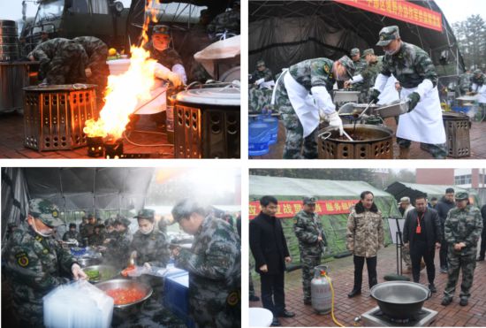 演練以部隊實戰化訓練保障為背景,某部前往凈月區玉潭鎮執行任務。當日氣溫驟降、天氣惡劣、雨雪交加,長春軍代室接到北部戰區軍事運輸投送中心通知,要求長春市軍供站做好1100份保障餐,并送達指定地點。考慮時間緊、任務重,長春市軍供站啟動中部軍供保障區域協作保障機制,聯合吉林市、四平市軍供站完成保障任務。