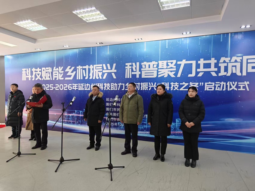 人民網(wǎng)圖們12月2日電 2日,延邊州暨圖們市2025—2026年科技助力鄉(xiāng)村振興“科技之冬”啟動儀式在圖們市舉行。延邊州科協(xié)黨組書記、主席金興燮,圖們市委組織部部長關(guān)海江等相關(guān)領(lǐng)導(dǎo),以及各街道各族群眾百余人齊聚一堂,共同見證這一重要時刻。