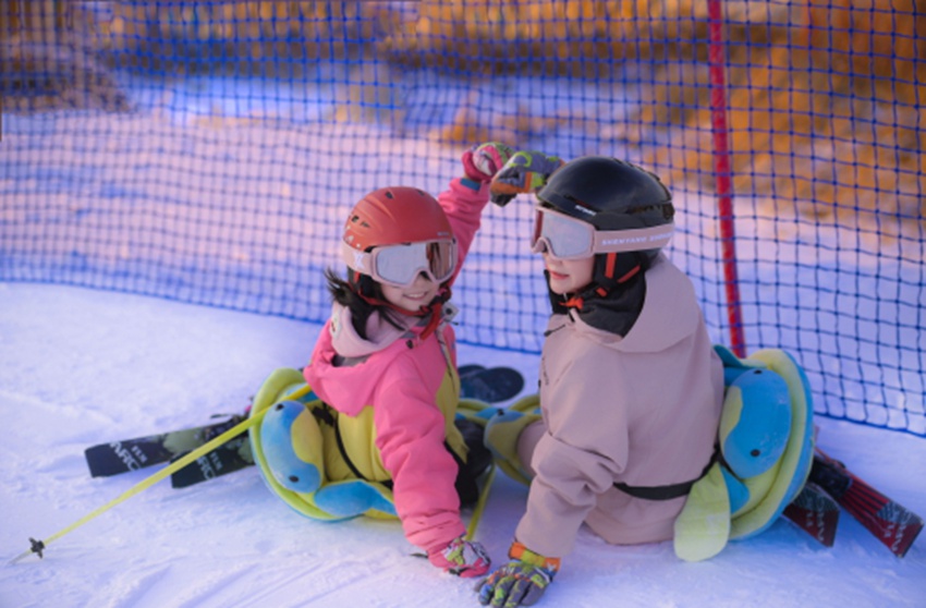 在北大湖滑雪度假區,孩子們在教練指導下練習轉彎、剎車,摔倒后重新站起的勇氣比分數更珍貴;