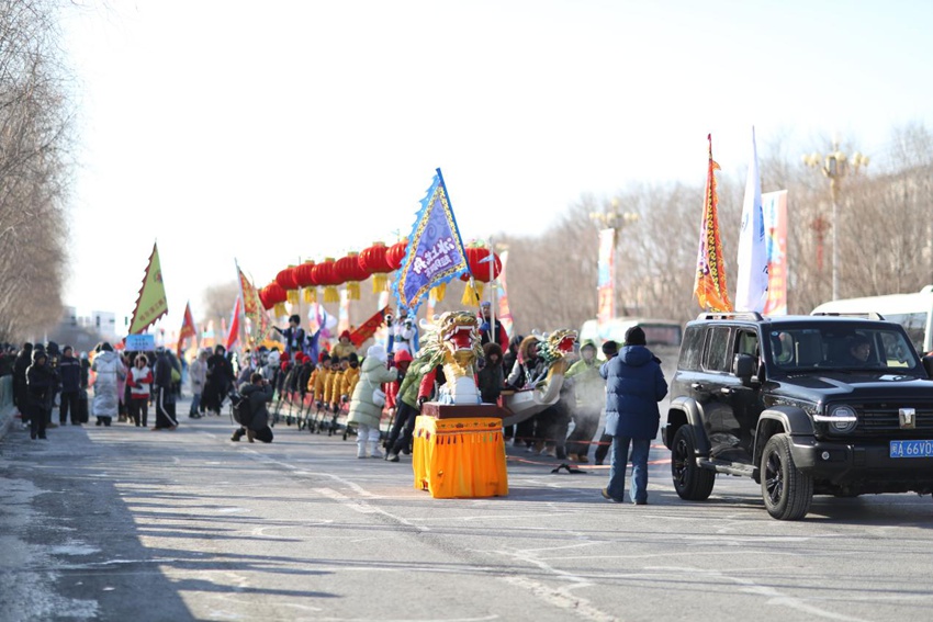 “龍騰雪韻”盛世節慶巡游于12月31日下午在富強大街舉行,由摩托車表演、龍舟組合、吉祥物、舞龍舞獅及南北龍舟隊員代表五大方陣組成,展現“零度的沸騰”,吸引眾多市民游客駐足圍觀。