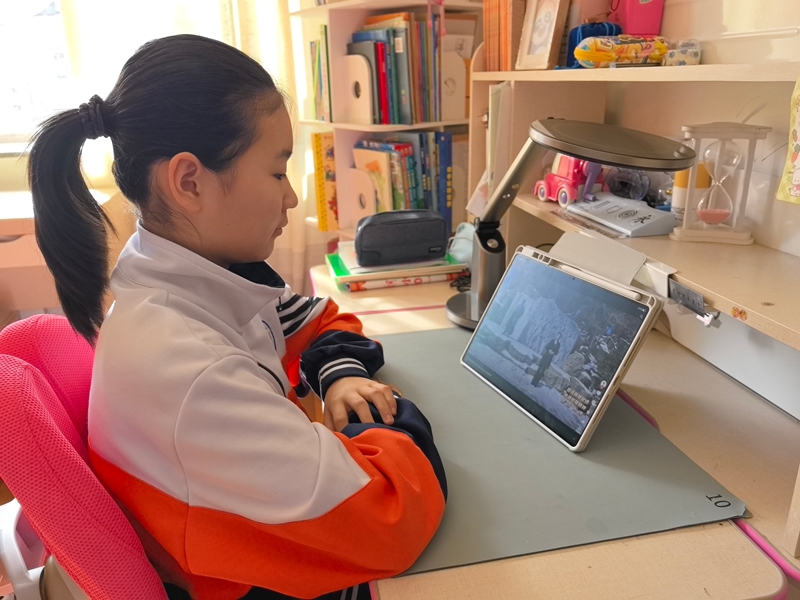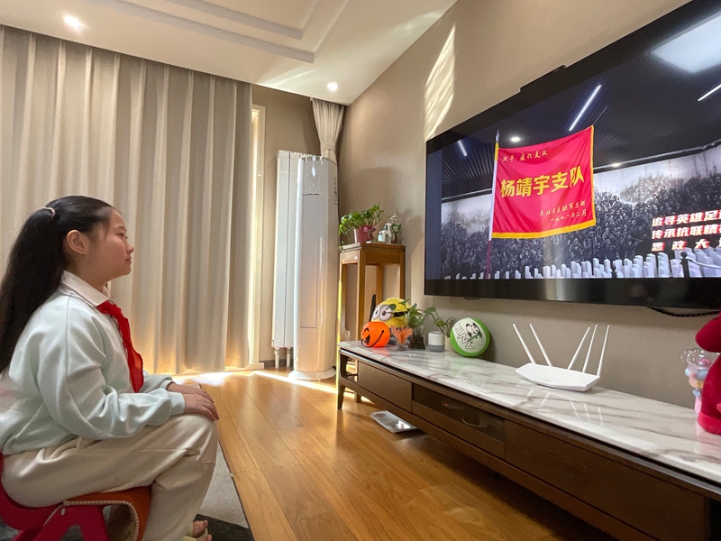 中小學學生在家收看同上一堂“追尋英雄足跡 傳承抗聯精神”思政大課。